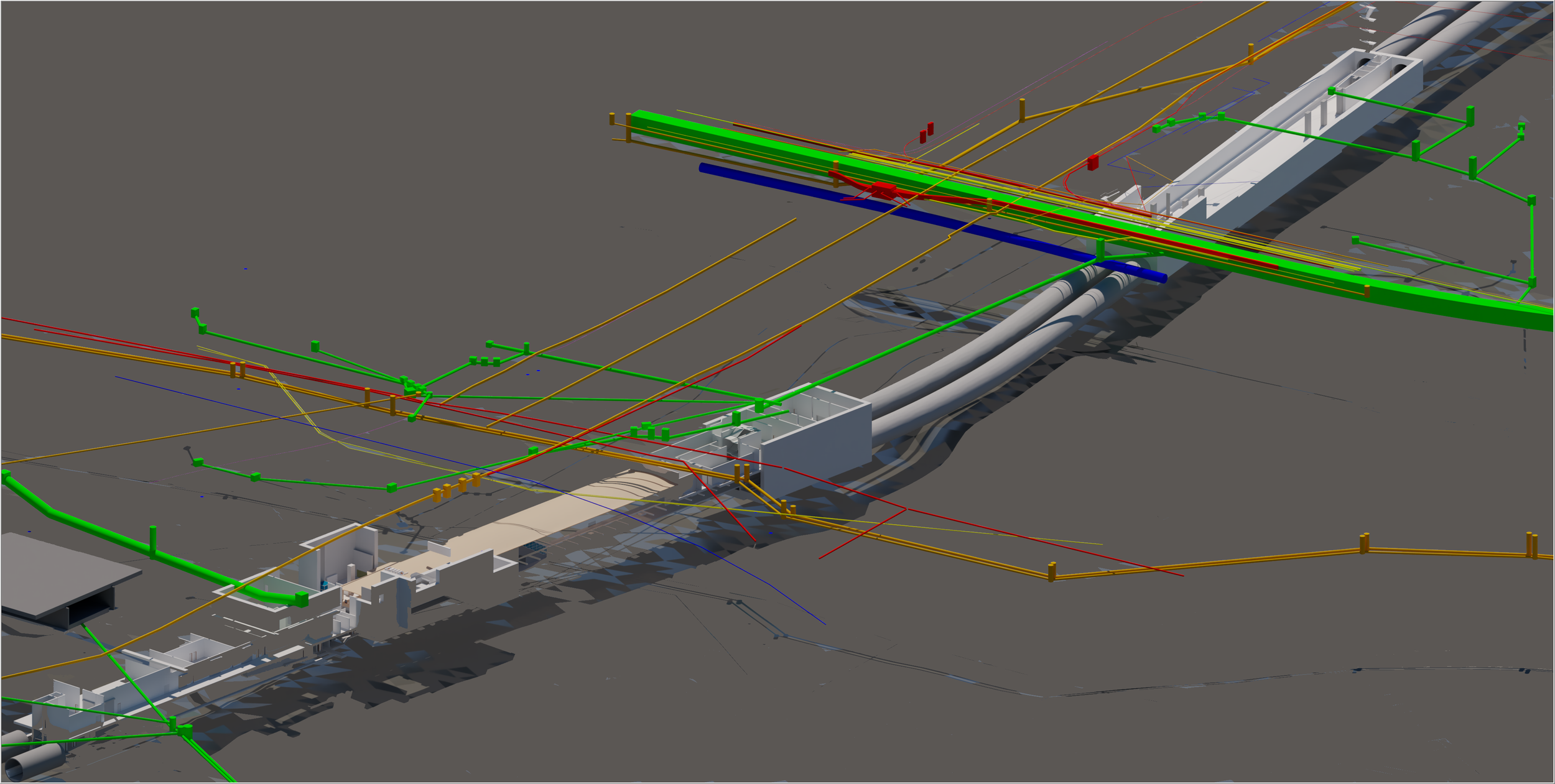 The Los Angeles County Metropolitan Transportation Authority (LACMTA) is extending its heavy rail system to the Westwood/Veterans Hospital area. This third phase of the 8.9 mile Westside Purple Line Extension includes 2.56 miles, two stations and crossovers. Our team developed and managed 3D models of existing conditions, Subsurface Utilities Engineering, twin circular tunnel structures and all structural, architectural and MEP components of underground stations for the BIM system for design, data sharing and team collaboration on the project. Tasks included creating and developing 3D models of facilities, development, and delivery of coaching and mentoring sessions for both the project management and engineering team of designers, construction managers and project managers.